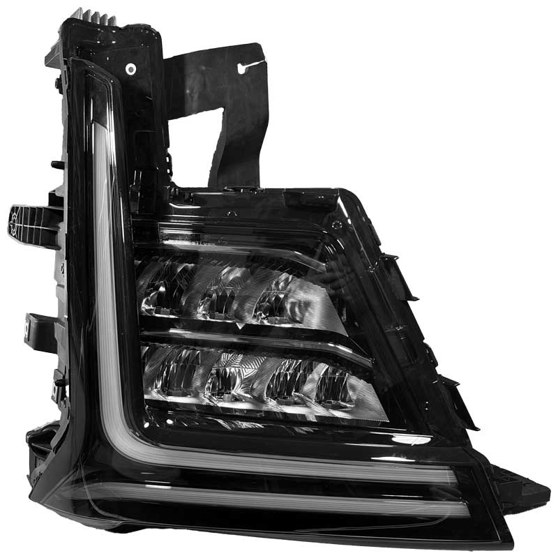 چراغ جلو سمت چپ این خودرو معمولاً از فناوری LED برای نوردهی بهینه و مصرف انرژی کمتر استفاده میکند. این چراغها برخلاف لامپهای هالوژن، طول عمر بسیار بالاتری دارند و نور سفید و واضحتری تولید میکنند که در شرایط تاریکی یا مهآلود، دید بهتری را برای راننده فراهم میآورد.